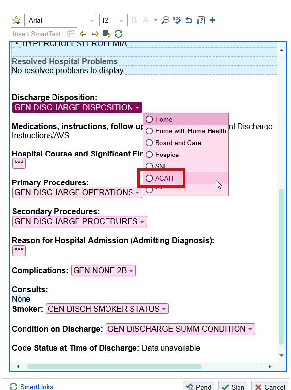 The general discharge disposition ACAH (Advanced Care at Home) is now available in the drop down menu in your HBS DISCHARGE SUMMARY NOTE*